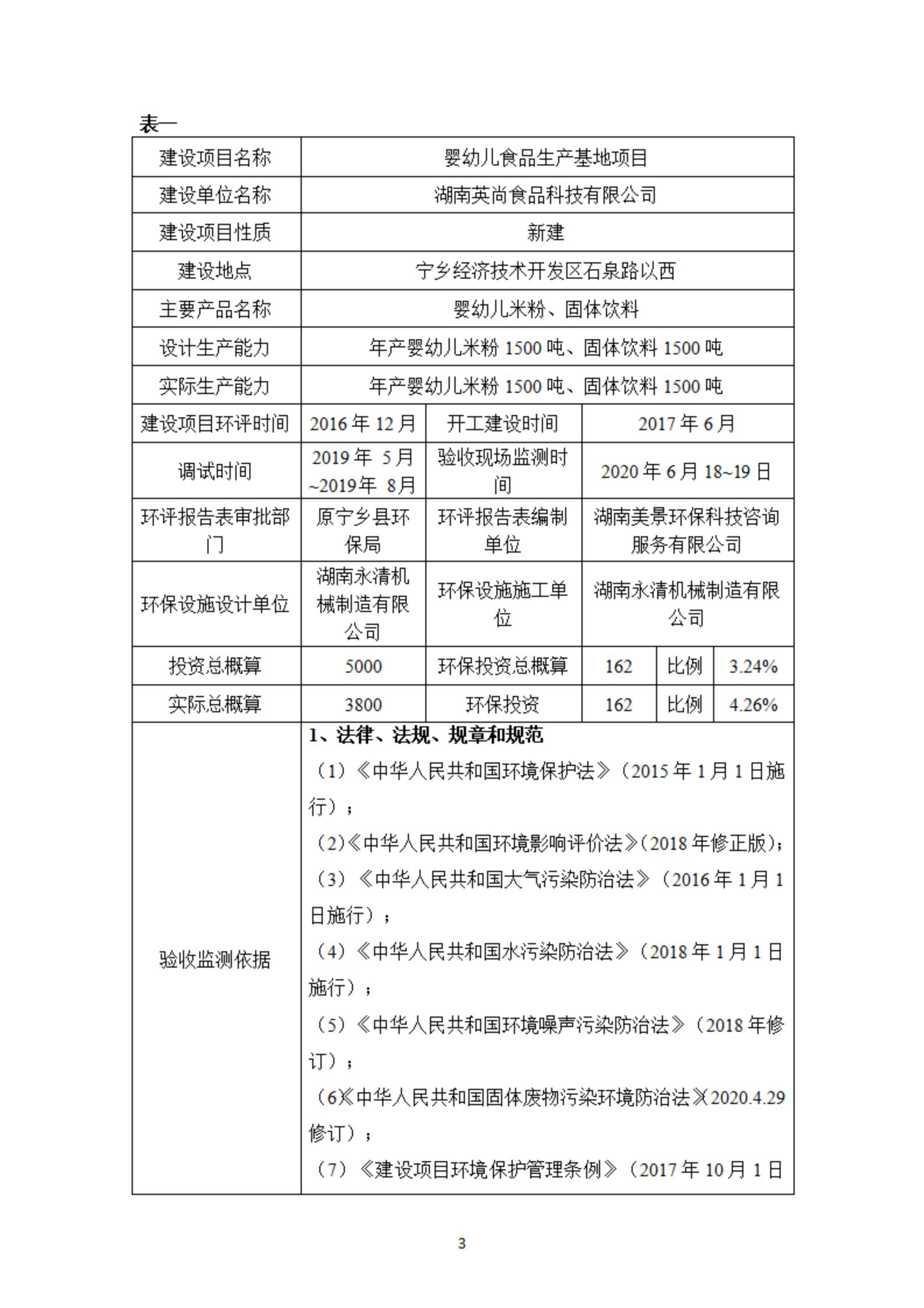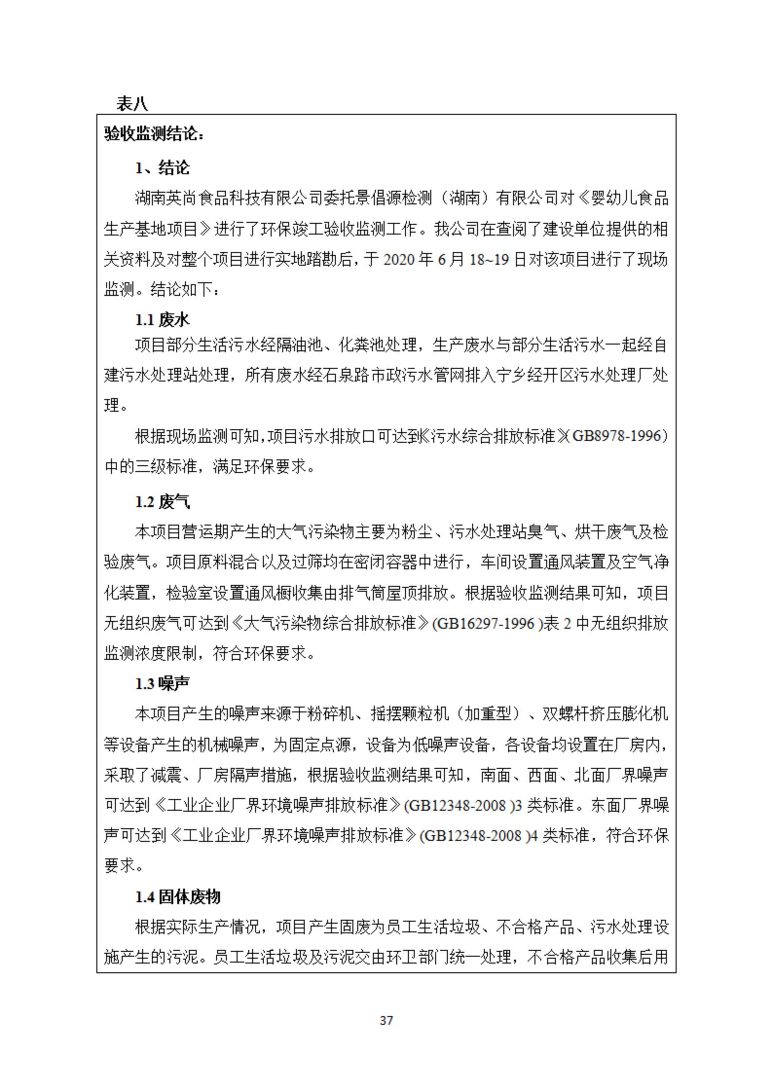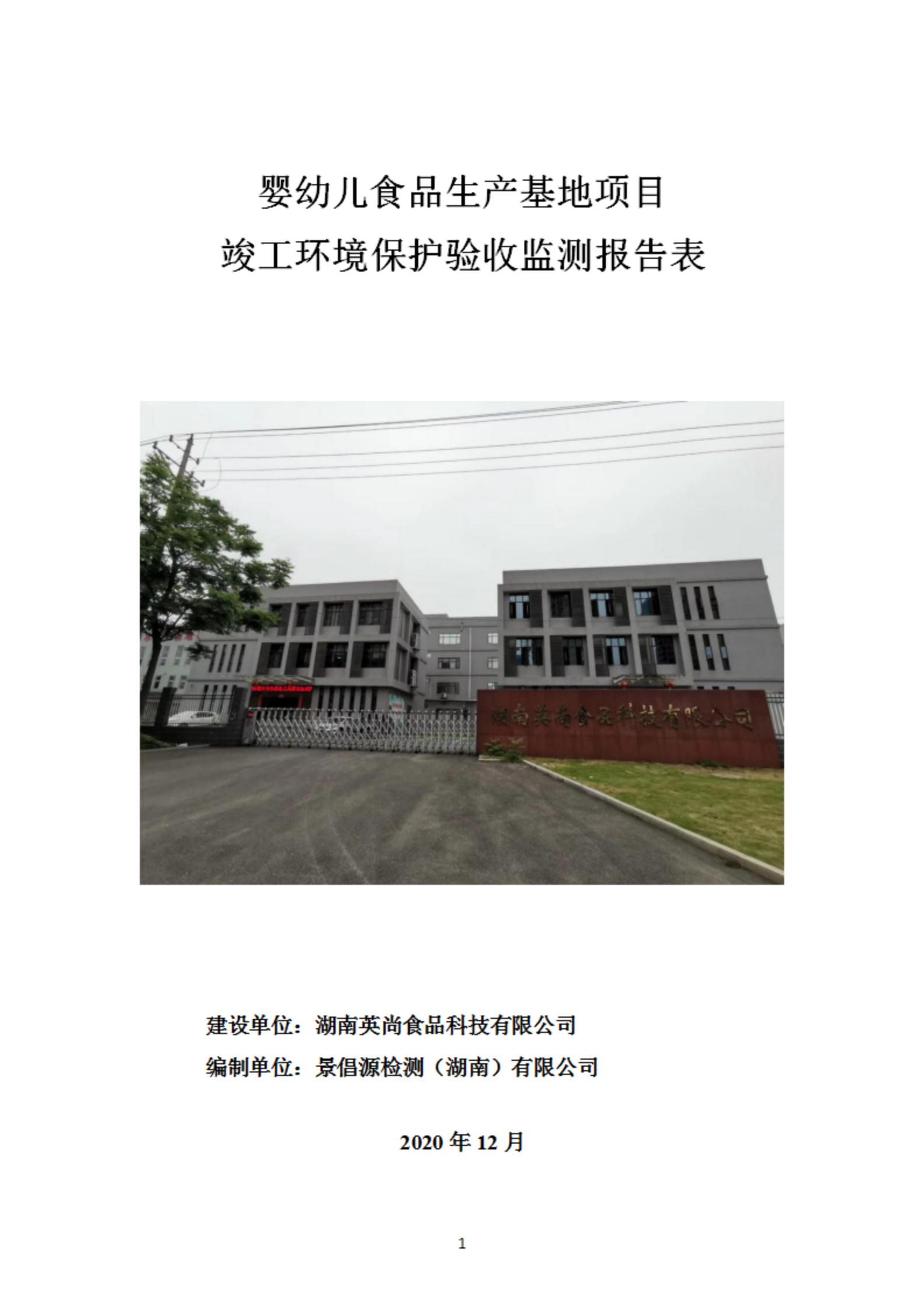 嬰幼兒食品生產(chǎn)基地項(xiàng)目竣工保護(hù)環(huán)境驗(yàn)收檢測(cè)報(bào)告表
